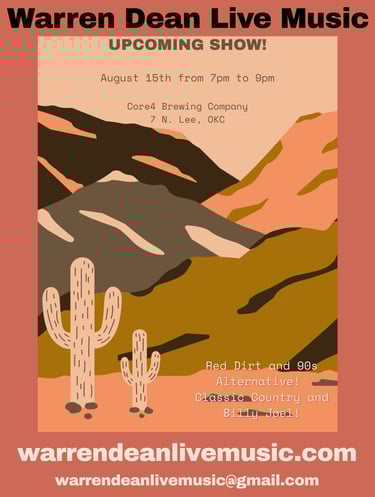 Oklahoma-style music. Oklahoma-style musician. Now playing at Core4 Brewing Company and Open Mics around Oklahoma county!